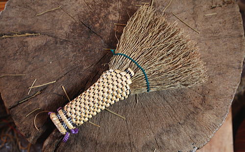 掃除機の普及で最近家庭ではみられなくなった和ぼうき。