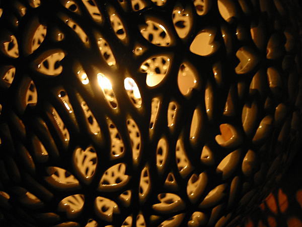陶に施された繊細な透かし文様は風とともに揺らぎ、奥深い明かりの妙を演出。